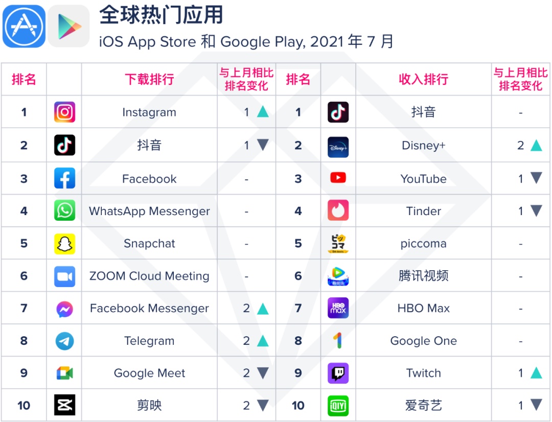 在全球使用下载榜改变不大,头部仍然是几家大厂的抢夺,字节的《剪映》作为《抖音》抢手编排辅助工具,现已接连第二个月坚持在前十榜单,现在要点推行的商场首要仍然在巴西和印尼。